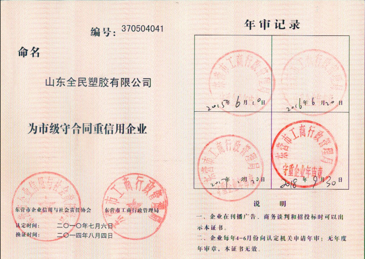市級守合同重信用2018年審核